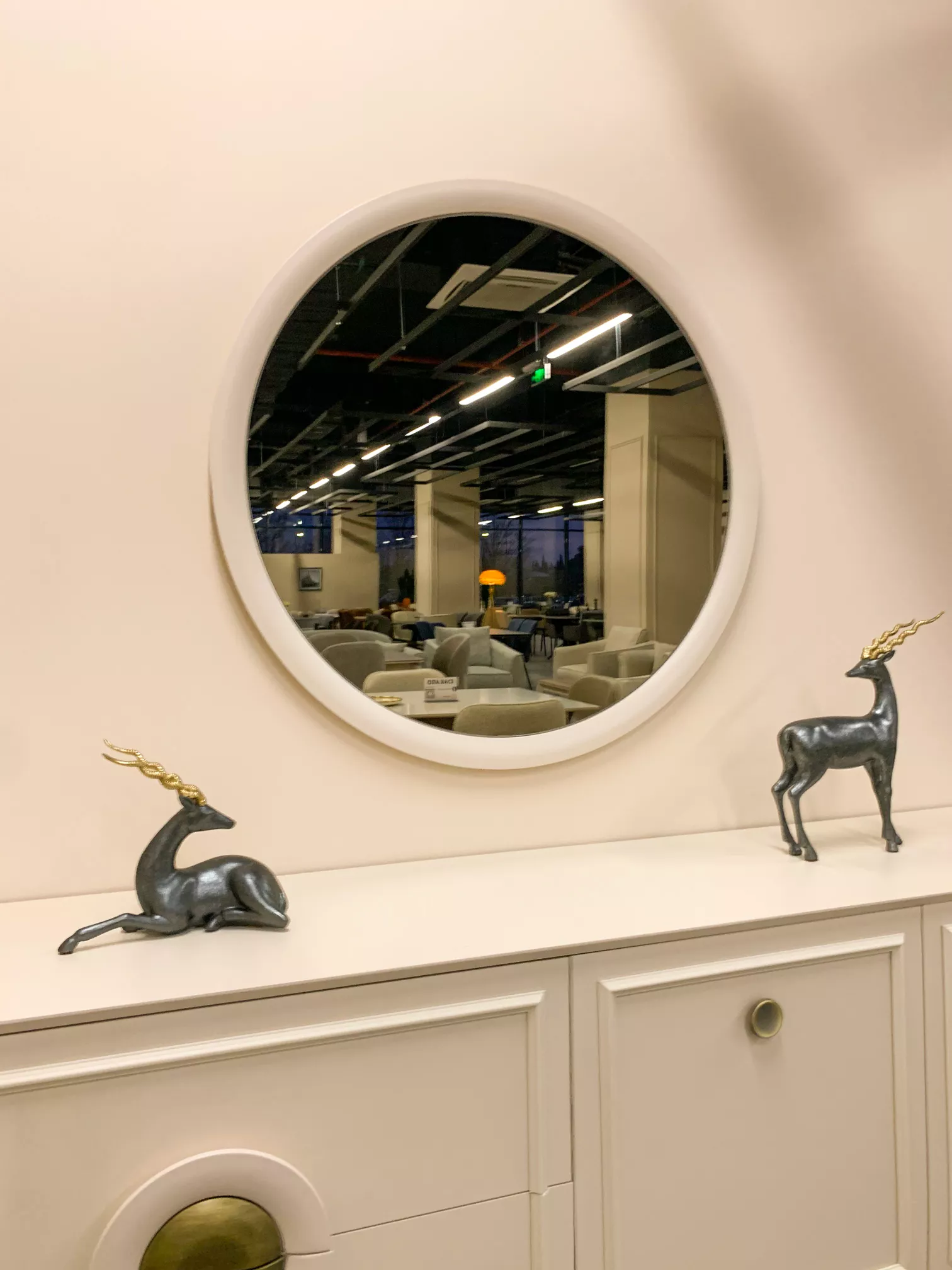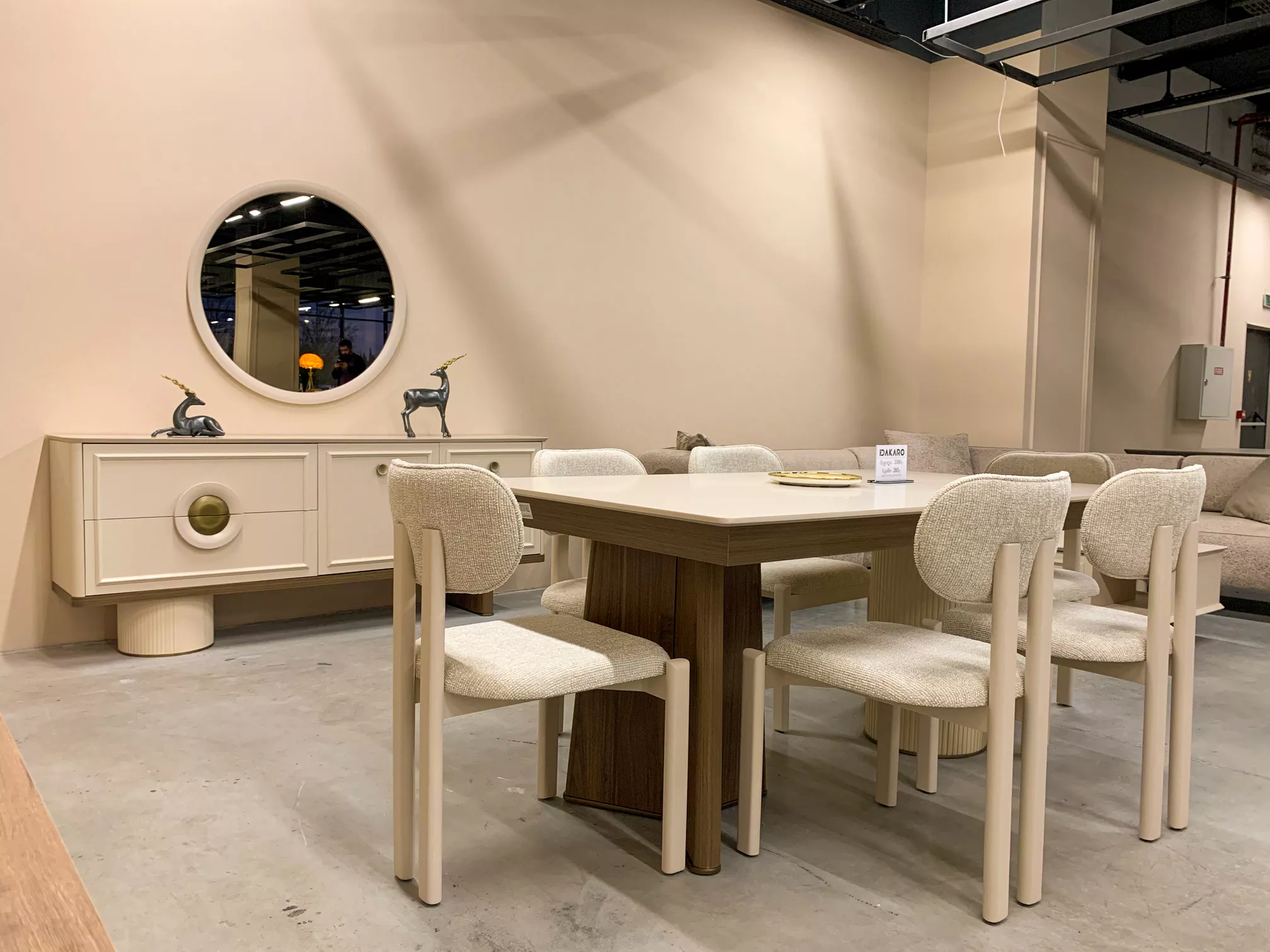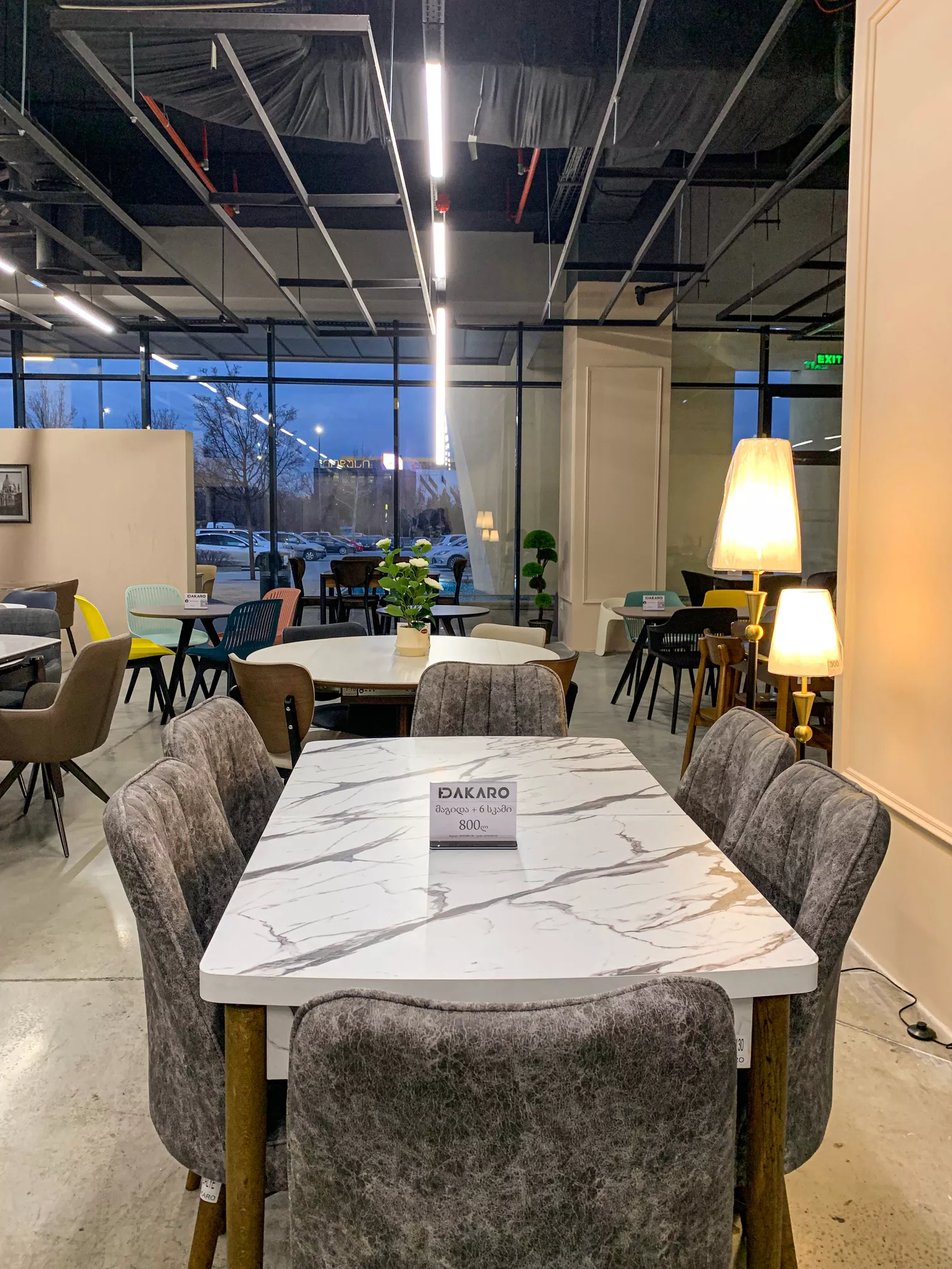 ღია სივრცე და ზონირება : დიდი მასშტაბის მიუხედავად, სივრცე დაგეგმარებულია ისე, რომ მომხმარებლისთვის გადაადგილება ინტუიციური და კომფორტული იყოს. ტიხრების ნაცვლად, სხვადასხვა კატეგორიის ავეჯი (მისაღები, სასადილო ზონები) დაჯგუფებულია ლოგიკურ „კუნძულებად“, რაც ამარტივებს პროდუქციის აღქმას.